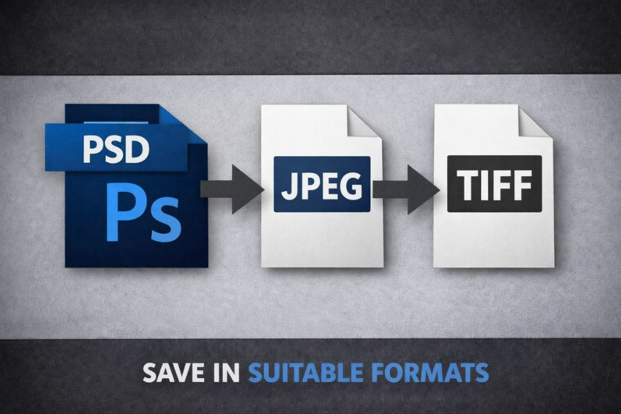 Tuy nhiên, nếu mục đích là đăng web, gửi khách hàng hoặc in ấn, bạn nên xuất thêm một bản sao ở định dạng tiêu chuẩn như JPEG (nhẹ, phù hợp online) hoặc TIFF (chất lượng cao cho in ấn). Cách làm tốt nhất là giữ một file PSD để lưu trữ và tạo các phiên bản xuất riêng cho từng nhu cầu sử dụng.