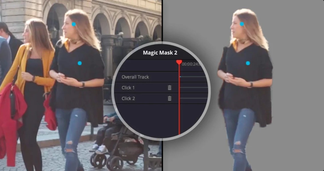 Magic Mask là một trong những tính năng nổi tiếng nhất của DaVinci Resolve và ở phiên bản 20, nó đã được nâng cấp mạnh mẽ nhờ AI thế hệ mới. Nếu trước đây Magic Mask chỉ có thể chọn vùng cơ bản, thì nay AI có thể nhận diện và theo dõi đối tượng trong suốt toàn bộ video với độ chính xác cực cao, ngay cả trong điều kiện ánh sáng phức tạp hoặc chuyển động nhanh.