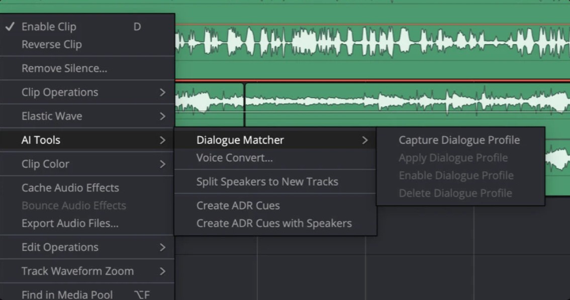 Một trong những công việc tốn thời gian nhất trong hậu kỳ là đồng bộ hội thoại khi quay phim. Mỗi cảnh thường có nhiều bản thu, đôi khi âm thanh phòng thu (ADR) không trùng khớp với khẩu hình hoặc môi trường gốc. Dialogue Matcher sử dụng AI để phân tích đặc điểm âm học của cảnh quay gốc và tự động “pha trộn” bản thu ADR sao cho hòa quyện hoàn hảo.