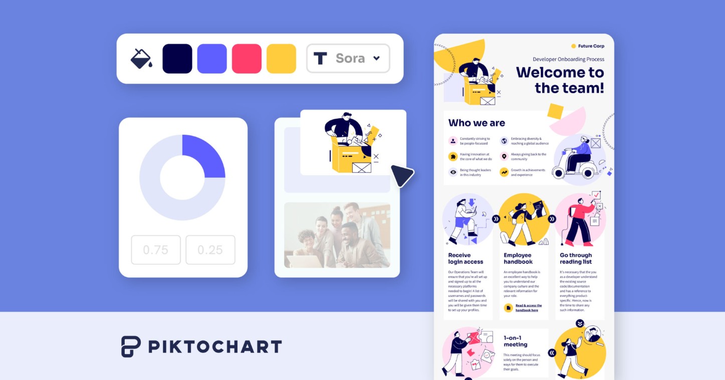 Piktochart là nền tảng lý tưởng cho những ai muốn chuyển đổi dữ liệu thành nội dung trực quan đẹp mắt mà không cần kỹ năng thiết kế chuyên sâu. Giống Visme, Piktochart tập trung chủ yếu vào infographic, báo cáo chuyên nghiệp, biểu đồ và bản đồ.