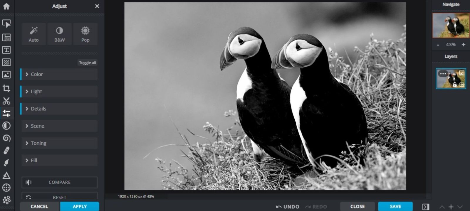 Pixlr X là một lựa chọn nhẹ, nhanh và dễ dùng dành cho những ai cần chỉnh sửa ảnh trực tuyến mà không muốn tải phần mềm nặng. Mặc dù đơn giản hơn so với các sản phẩm Adobe, Pixlr X vẫn đáp ứng tốt nhu cầu chỉnh sửa cơ bản như cắt ảnh, chỉnh sáng tối, tăng độ tương phản, thêm bộ lọc hoặc làm mờ hậu cảnh.
