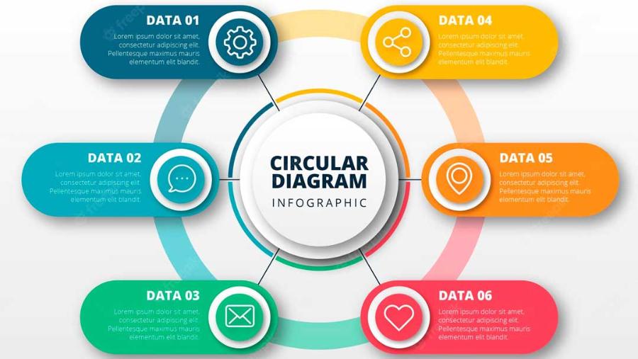 Mẫu vòng tròn phù hợp mô tả chu trình, vòng đời sản phẩm hoặc các yếu tố lặp lại. Bố cục tròn tạo cảm giác liền mạch, cân đối và dễ thu hút người xem. Mẫu này rất được ưa chuộng trong giáo dục và truyền thông nội bộ.