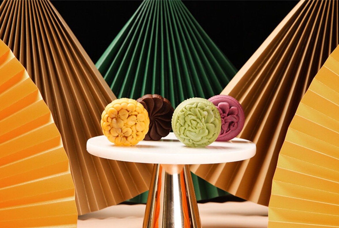 Với concept khối hình học, người chụp nên chọn những mẫu bánh trung thu thiết kế hiện đại, chẳng hạn bánh nhiều màu, bánh macaron trung thu hoặc bánh có lớp phủ sáng bóng. Sự hiện đại trong thiết kế bánh sẽ hòa quyện với sự rực rỡ của phông nền, tạo nên tổng thể thống nhất, cuốn hút.