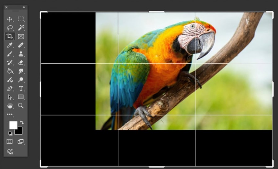Khi Crop Tool được kích hoạt, một khung viền sẽ xuất hiện xung quanh bức ảnh. Lúc này bạn chỉ cần kéo các cạnh của khung crop ra phía ngoài theo hướng muốn mở rộng.