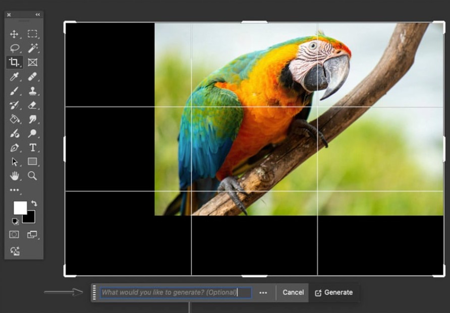 Trước hết, hãy mở rộng khung hình một cách hợp lý. Nếu kéo khung crop quá xa so với bức ảnh gốc, AI có thể gặp khó khăn trong việc tạo ra nội dung phù hợp. Điều này đôi khi khiến phần nền mới trông thiếu tự nhiên.