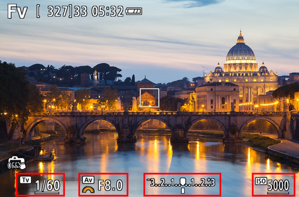Một điểm đáng chú ý là Fv hiển thị đồng thời các thông số phơi sáng, giúp người dùng dễ dàng theo dõi và điều chỉnh nhanh hơn so với cách vận hành truyền thống. Điều này đặc biệt hữu ích trong những tình huống ánh sáng thay đổi liên tục như chụp đường phố hoặc sự kiện. Có thể xem Fv như một “trung tâm điều khiển” hiện đại, giúp tối ưu hóa thao tác và nâng cao trải nghiệm chụp ảnh trên các dòng máy của Canon.