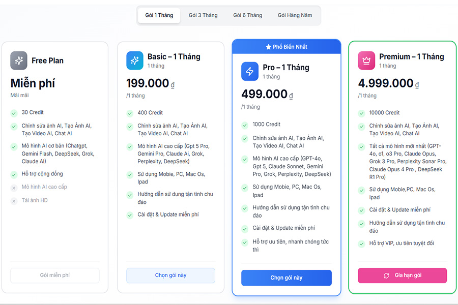 Hệ thống hỗ trợ đa dạng tác vụ như: Chỉnh Sửa Ảnh AI, Chat AI, Tạo Ảnh AI, Tạo Video giúp tăng tốc độ sản xuất nội dung mà vẫn đảm bảo chất lượng đồng bộ.