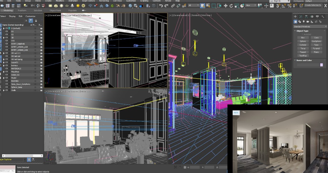 Điểm nổi bật của 3ds Max nằm ở khả năng dựng hình chính xác và kiểm soát chi tiết tốt. Người dùng có thể bắt đầu từ các hình khối cơ bản, sau đó sử dụng hệ thống modifier và công cụ chỉnh sửa để phát triển thành những mô hình phức tạp, phù hợp với yêu cầu thực tế. Đồng thời, hệ thống vật liệu và ánh sáng được thiết kế tối ưu giúp mô phỏng môi trường gần giống thực tế, mang lại hình ảnh có độ hoàn thiện cao, đặc biệt trong các dự án kiến trúc và nội thất.