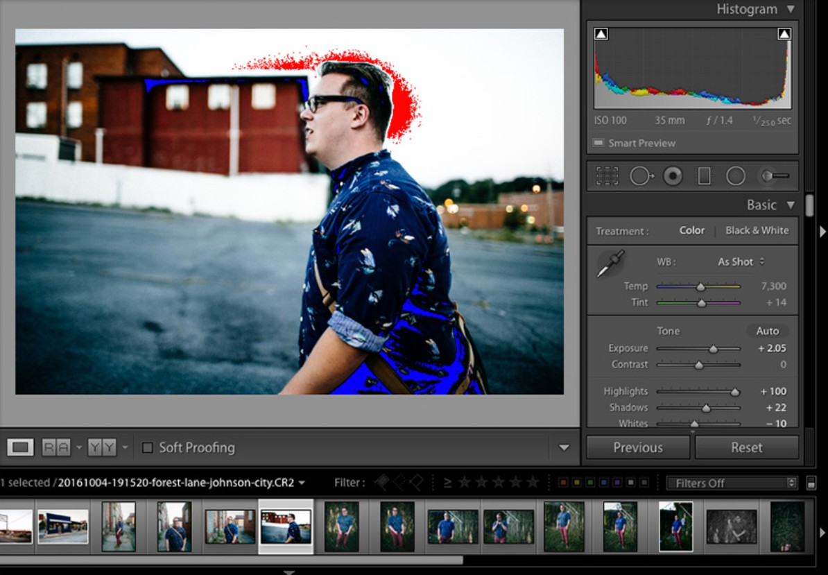Để tránh tình trạng này, Lightroom cung cấp một công cụ cực kỳ hữu ích. Trong mô-đun Develop, chỉ cần nhấn phím J, bạn sẽ thấy những vùng bị mất chi tiết hiển thị bằng màu đỏ (vùng sáng bị cháy) và màu xanh (vùng tối bị đen). Nhờ vậy, bạn có thể dễ dàng nhận biết và điều chỉnh lại độ phơi sáng, highlight hoặc shadow để cân bằng lại hình ảnh.