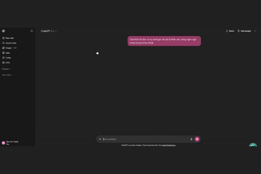 → ChatGPT sẽ sử dụng giọng điệu chuyên sâu, lập luận chặt chẽ, ưu tiên thuật ngữ chuyên ngành và cách diễn đạt mang tính phân tích.