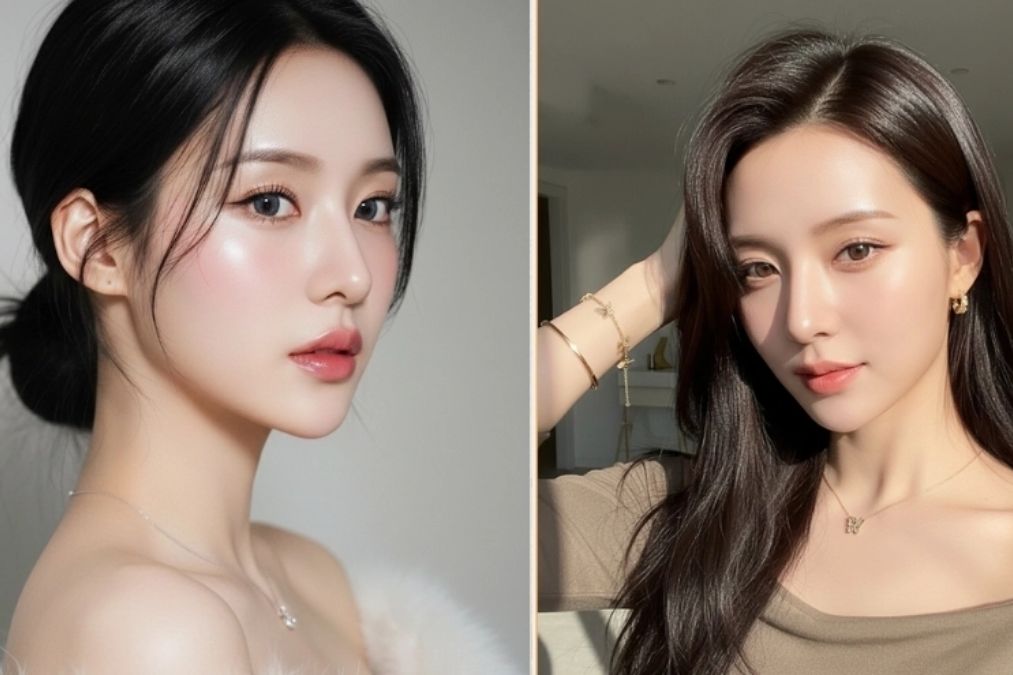 Đây là câu lệnh dành cho những ai thích phong cách ultra-realistic – ảnh nhìn như chụp studio cao cấp nhưng vẫn giữ 100% nét mặt thật. Prompt tập trung rất kỹ vào chi tiết da, mắt, mi và makeup, giúp gương mặt trông căng bóng, rạng rỡ nhưng không bị giả.