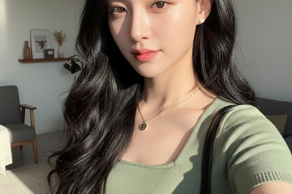 Nếu bạn yêu thích vibe dịu dàng, trong trẻo kiểu hot girl châu Á thì đây là câu lệnh rất dễ dùng. Prompt nhấn mạnh vào makeup tự nhiên, biểu cảm nhẹ nhàng và các chi tiết nhỏ như lúm đồng tiền, phụ kiện tinh tế, giúp bức ảnh trông rất đời nhưng vẫn cuốn hút.