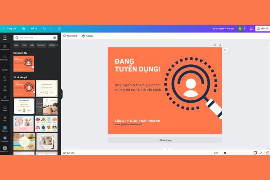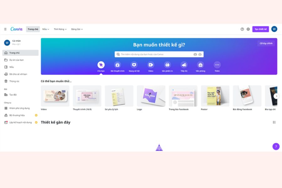 Một trong những tính năng tiện lợi nhất của Canva là các kích thước mẫu được thiết kế sẵn cho từng nền tảng phổ biến. Thay vì phải tính toán và nhập thủ công, bạn chỉ cần chọn loại thiết kế tương ứng, Canva sẽ tự động điều chỉnh khung hình sao cho phù hợp. Điều này không chỉ giúp tiết kiệm thời gian mà còn đảm bảo hình ảnh và nội dung hiển thị chuẩn, tránh bị cắt hoặc méo mó khi đăng tải.