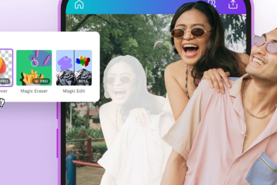 Bạn nhấn vào hình ảnh đã tải lên, sau đó chọn Edit photo trên thanh công cụ và truy cập vào Magic Studio – nơi tập hợp các tính năng AI mạnh mẽ của Canva. Một số công cụ nổi bật bao gồm: