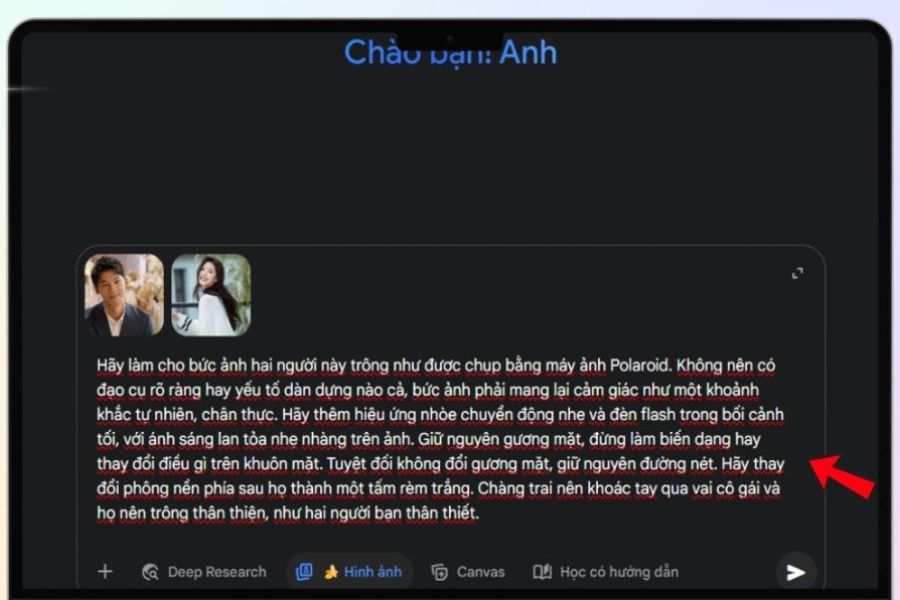Prompt chính là “chìa khóa” quyết định bức ảnh Polaroid do AI Gemini tạo ra có đẹp và tự nhiên hay không. Nếu chỉ nhập mô tả quá ngắn như “tạo ảnh Polaroid”, kết quả thường sẽ khá chung chung và thiếu cảm xúc. Ngược lại, khi bạn mô tả rõ phong cách, ánh sáng, cảm giác và những yếu tố cần giữ nguyên, AI sẽ hiểu đúng ý hơn và cho ra bức ảnh mang đậm chất Polaroid cổ điển. Một prompt tốt không cần quá dài dòng, nhưng nên đủ chi tiết để Gemini biết đâu là điều cần thay đổi và đâu là yếu tố phải giữ lại từ ảnh gốc.