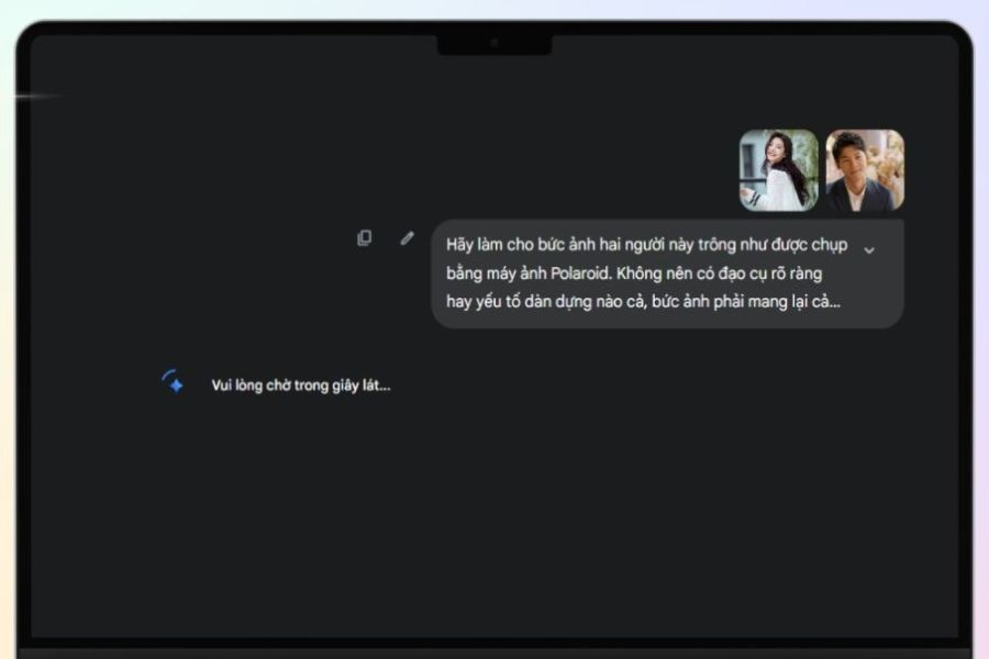 Khi đã nhập xong prompt, bạn chỉ cần nhấn nút gửi yêu cầu tạo ảnh. Lúc này, Gemini sẽ bắt đầu phân tích hình ảnh, kết hợp với mô tả của bạn để tái tạo bức ảnh theo phong cách Polaroid mong muốn.