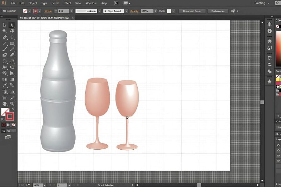 Trong quá trình làm 3D trong Adobe Illustrator, Revolve là công cụ đặc biệt phù hợp để dựng các vật thể có tính đối xứng như chai lọ, cốc nước, bình hoa hay các sản phẩm dạng tròn. Thay vì phải vẽ toàn bộ khối phức tạp, bạn chỉ cần xây dựng đúng hình dạng mặt cắt, Illustrator sẽ tự động xoay và tạo ra đối tượng 3D hoàn chỉnh. Quy trình dưới đây sẽ giúp bạn thao tác nhanh gọn, chính xác và dễ áp dụng cho nhiều loại thiết kế khác nhau.