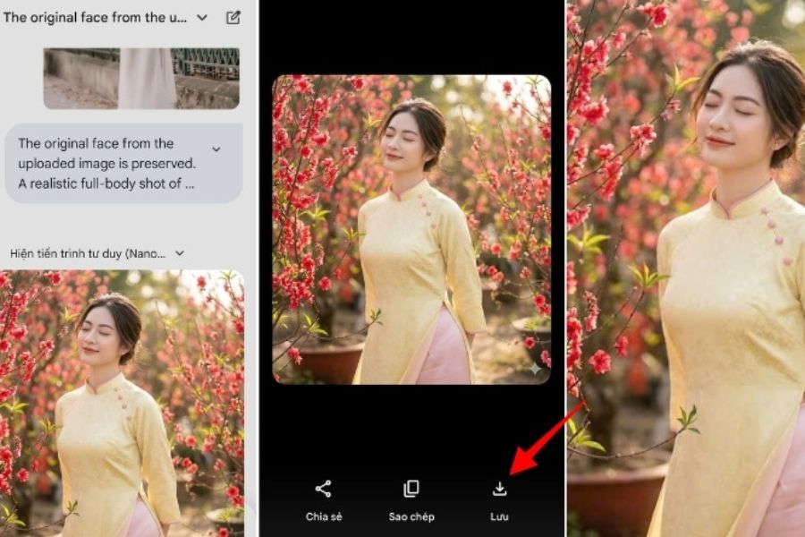 Chú ý tỷ lệ ảnh: Nếu bạn không yêu cầu rõ tỷ lệ trong prompt, AI thường sẽ tạo ảnh theo tỷ lệ của ảnh tham chiếu ban đầu. Vì vậy, nếu muốn ảnh vuông để đăng mạng xã hội hoặc ảnh dọc toàn thân khoe trọn tà áo dài, bạn nên cân nhắc ngay từ lúc chụp ảnh tham khảo hoặc thêm yêu cầu tỷ lệ ảnh vào câu lệnh.