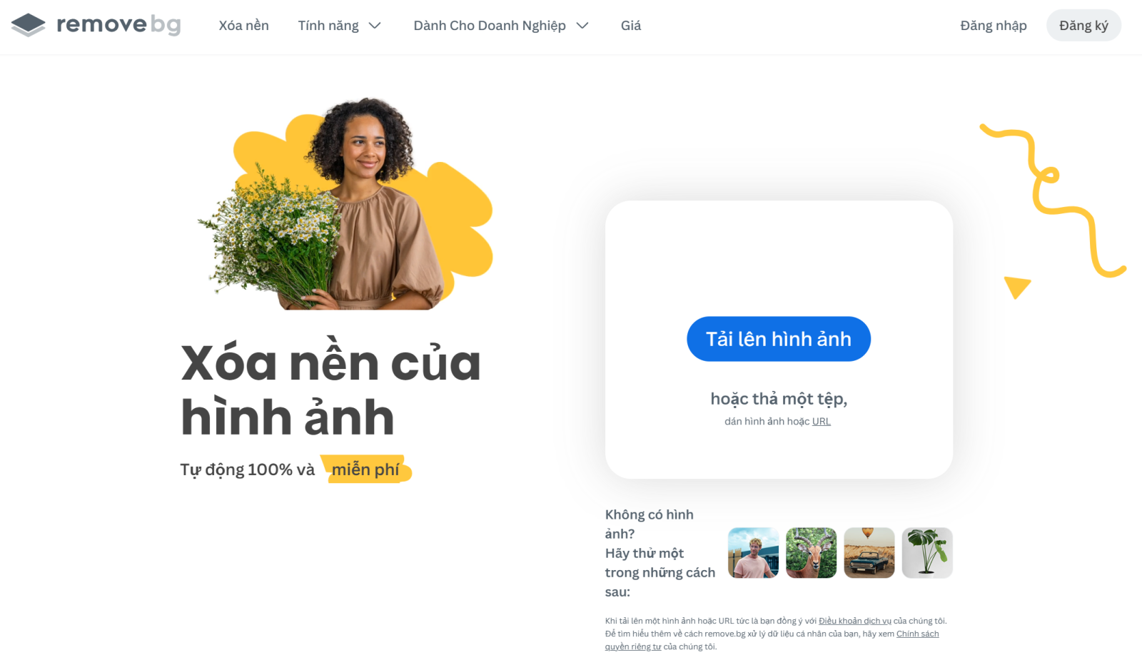 Trang web remove.bg cho phép người sử dụng tải ảnh lên hoặc nhập đường link của ảnh để tách nền. Sau đó hệ thống AI của trang web sẽ xử lý hình ảnh trong khoảng vài giây và cho ra một bức ảnh với nền trong suốt định dạng PNG. Tuy nhiên, trang web chỉ tách được nền của chủ thể là người, cũng như bức ảnh cho ra chỉ dừng lại ở độ phân giải nhỏ là 500 x 500 pixel.