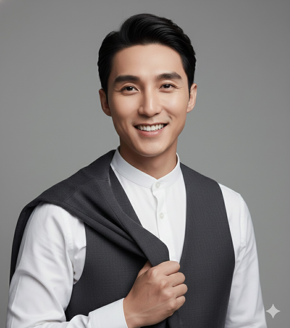 Tạo cảm giác nhà lãnh đạo trẻ, chuyên nghiệp nhưng không quá cứng nhắc. Vibe: modern CEO, elegant, premium lifestyle, tông màu sạch - sang - nhẹ.