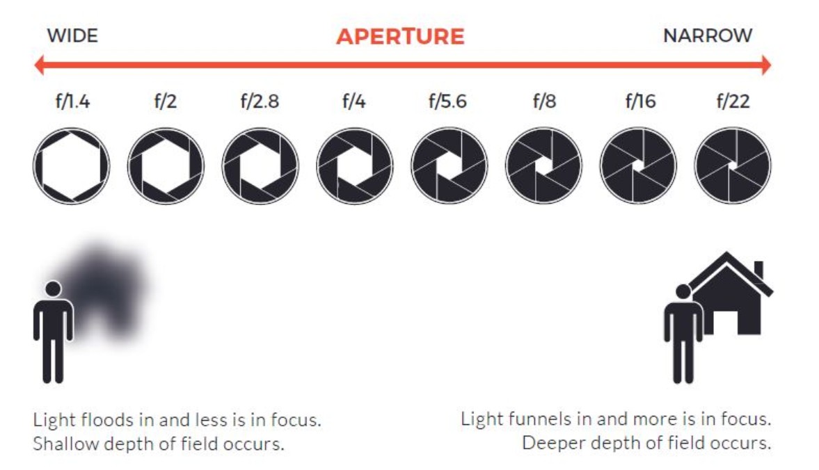 Khẩu độ là kích thước mở của ống kính, được ký hiệu bằng chỉ số F (như f/1.8, f/4, f/11...). Khi khẩu độ mở lớn (tức số F nhỏ), nhiều ánh sáng đi vào máy hơn, ảnh sẽ sáng hơn và độ sâu trường ảnh nông, phông nền trở nên mờ nhẹ tạo hiệu ứng xóa phông đẹp mắt. Ngược lại, khẩu độ nhỏ (số F lớn) sẽ cho ánh sáng ít hơn, ảnh tối hơn nhưng độ sâu trường ảnh lớn hơn, mọi chi tiết ở tiền cảnh và hậu cảnh đều rõ nét. Hiểu khẩu độ giúp bạn kiểm soát được mức độ xóa phông và tạo chiều sâu cho hình ảnh, đặc biệt hữu ích khi chụp chân dung hoặc chụp phong cảnh.