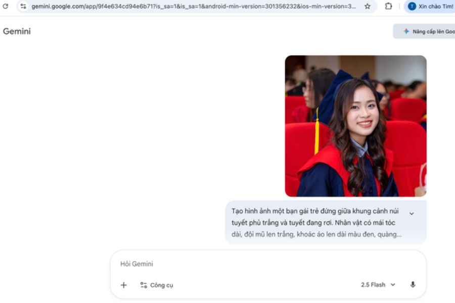 Nếu bạn đang tìm cách “bắt trend” ảnh đứng giữa trời tuyết đang gây bão mạng, thì Gemini AI chính là công cụ lý tưởng nhất lúc này. Với giao diện thân thiện, tốc độ xử lý cực nhanh và khả năng tạo ảnh chân thực, bạn chỉ cần vài thao tác đơn giản là đã có ngay bức ảnh mùa đông lung linh chuẩn “phim Hàn”.
