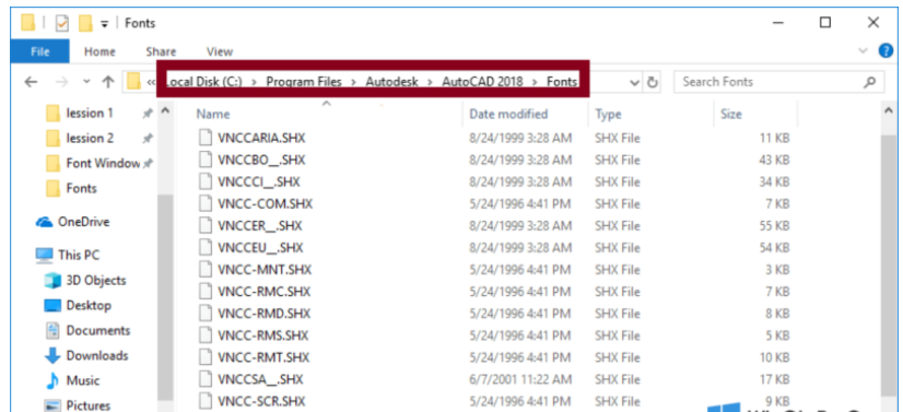 Bước 3: Sao chép toàn bộ file .shx vào thư mục Fonts của AutoCAD theo đường dẫn ở trên.