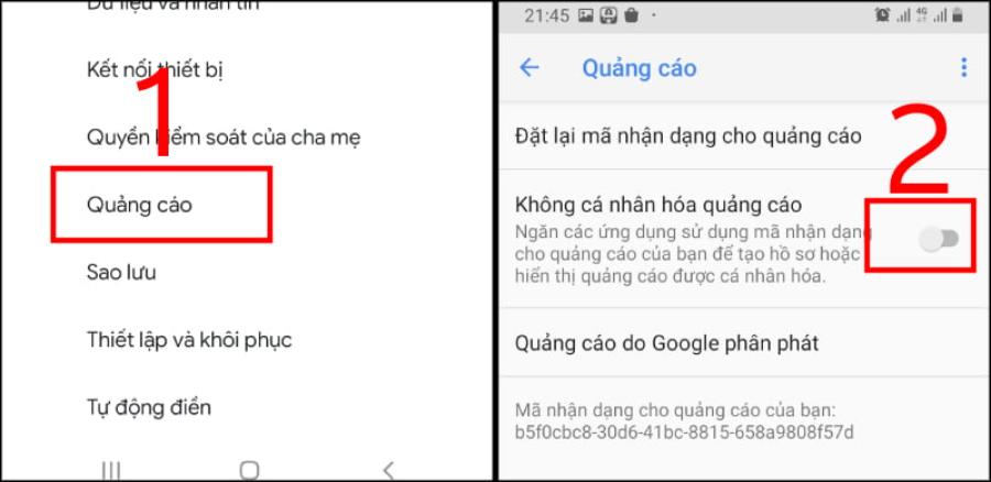 Điện thoại sẽ không hiển thị các quảng cáo dựa trên sở thích hoặc lịch sử tìm kiếm của bạn.