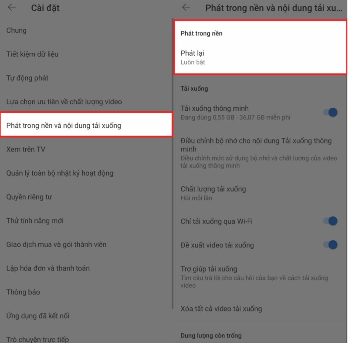 · Luôn bật: Video luôn phát trong nền, kể cả khi bạn tắt màn hình hoặc chuyển sang ứng dụng khác.