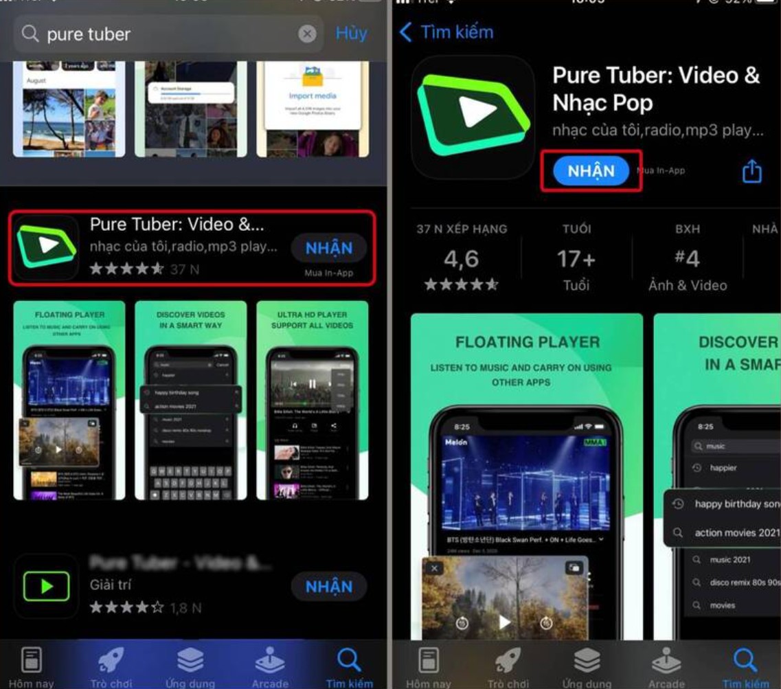 Bước 1: Tìm và tải ứng dụng Pure Tuber trên App Store. Ứng dụng tương thích với hầu hết các dòng iPhone, bao gồm cả iPhone 14 series mới nhất.