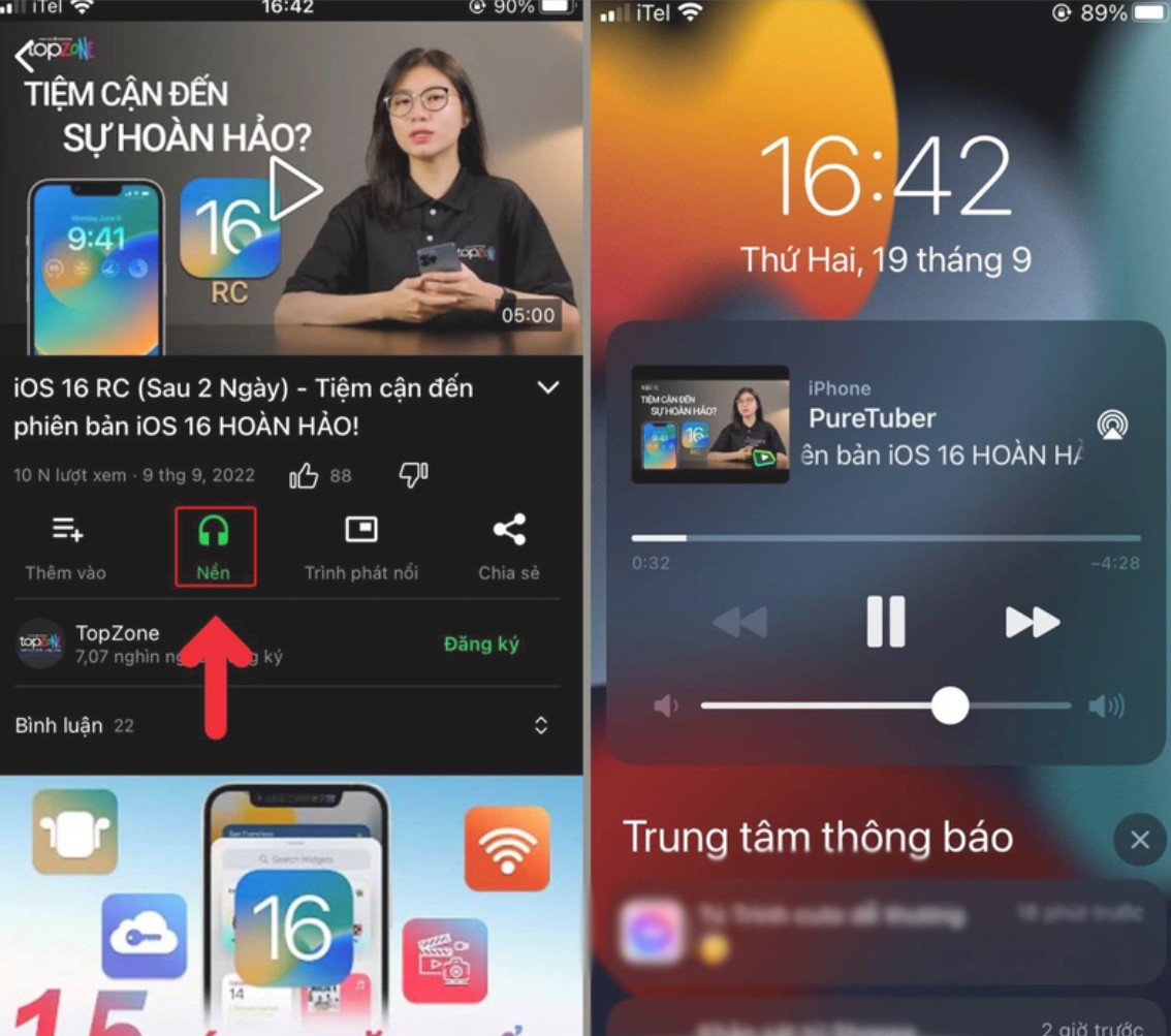 Bước 4: Chọn biểu tượng tai nghe dưới video. Âm thanh sẽ tiếp tục phát ngay cả khi bạn thoát khỏi ứng dụng hoặc tắt màn hình.