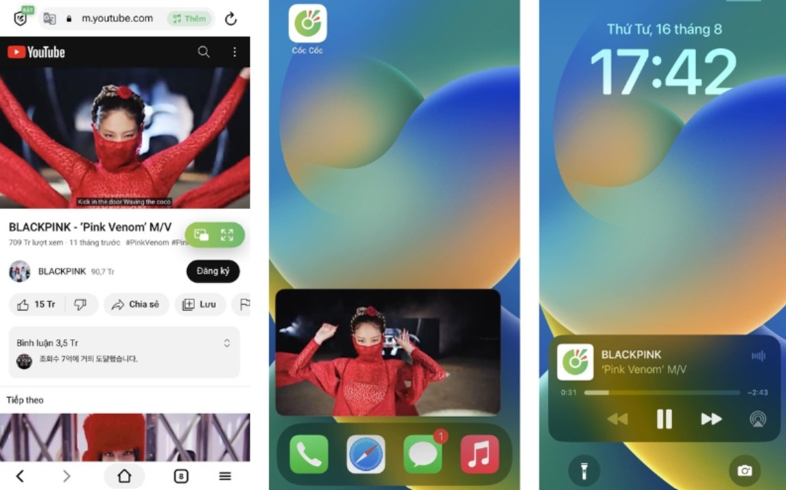 Trình duyệt Cốc Cốc là một trong những lựa chọn đơn giản và miễn phí nhất để phát YouTube dưới nền. Dù bạn đang dùng iPhone, iPad hay điện thoại Android, Cốc Cốc đều hỗ trợ đầy đủ và hoạt động ổn định. Giao diện dễ dùng, tốc độ tải nhanh cùng tính năng Ghim video tiện lợi giúp người dùng trải nghiệm phát YouTube khi tắt màn hình một cách mượt mà.