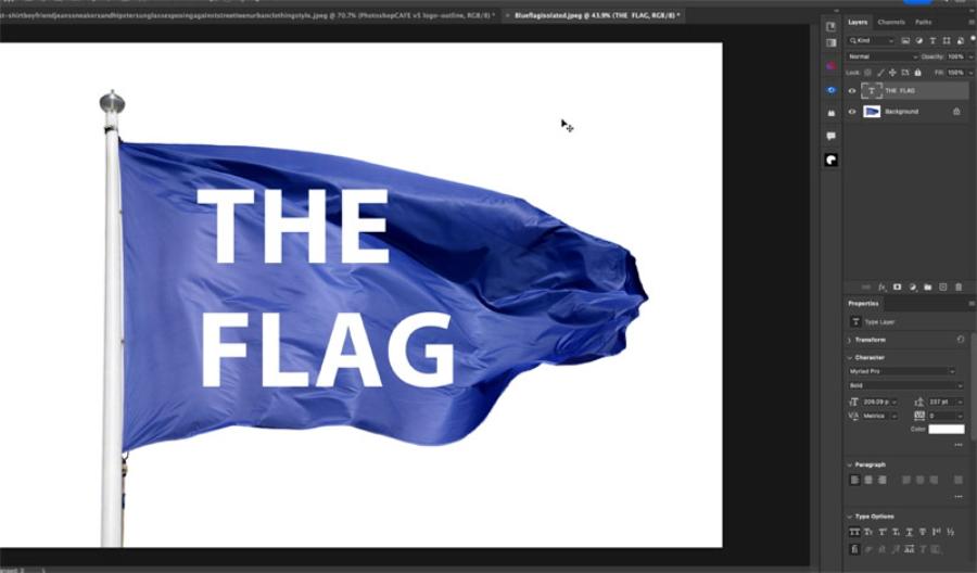 Sử dụng Edit > Transform > Perspective hoặc Distort. Đây là thao tác quan trọng giúp chữ bám theo bề mặt vật thể, tạo cảm giác chân thật.
