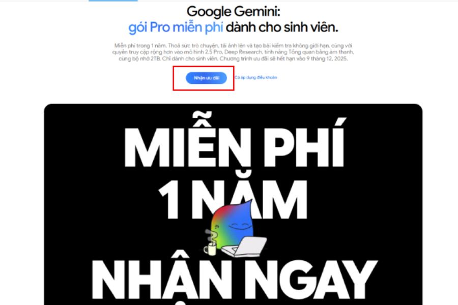 Chương trình ưu đãi Gemini Pro miễn phí cho sinh viên được Google áp dụng từ nay cho đến hết ngày 9/12/2025. Điều đó có nghĩa là bạn có thể đăng ký và kích hoạt gói bất kỳ lúc nào trong thời gian này, miễn là vẫn còn trong thời hạn ưu đãi. Sau khi kích hoạt thành công, gói Gemini Pro của bạn sẽ có hiệu lực trong vòng 12 tháng liên tục kể từ ngày đăng ký.