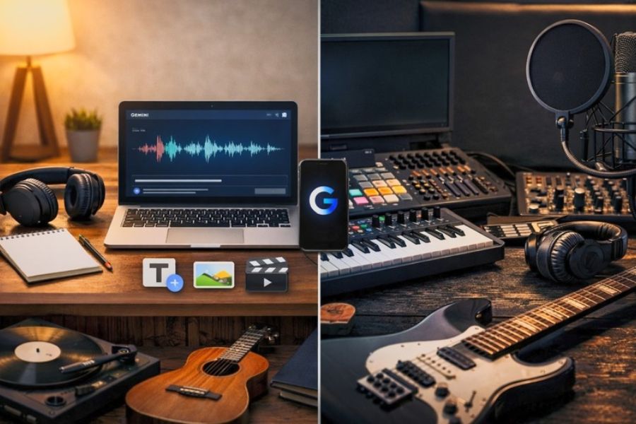 Cách làm nhạc trên Gemini khá trực quan và dễ thao tác, ngay cả với những người chưa từng sử dụng công cụ AI sáng tác nhạc trước đó. Nhờ tích hợp mô hình Lyria 3, Gemini có thể biến một đoạn mô tả đơn giản thành bản nhạc hoàn chỉnh chỉ trong vài giây. Bạn không cần biết nhạc lý, không cần phần mềm sản xuất âm nhạc phức tạp mà vẫn có thể tạo ra giai điệu, lời bài hát và phong cách âm nhạc đúng với ý tưởng của mình. Dưới đây là hướng dẫn từng bước chi tiết giúp bạn dễ dàng tạo bản nhạc AI trên Gemini. Chỉ cần làm theo các bước sau, bạn có thể nhanh chóng tạo ra một đoạn nhạc 30 giây phù hợp để dùng cho video, podcast, mạng xã hội hoặc các dự án sáng tạo cá nhân.
