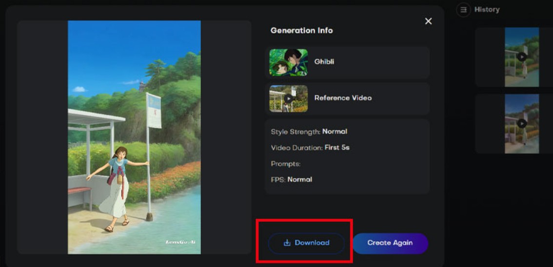 Sau khi hoàn chỉnh mọi yếu tố, bạn nhấn xuất video. Hệ thống tiến hành xử lý và trả về video hoạt hình đã được chuyển đổi. Bạn có thể xem trước, chỉnh sửa hoặc tải xuống ngay sau đó.