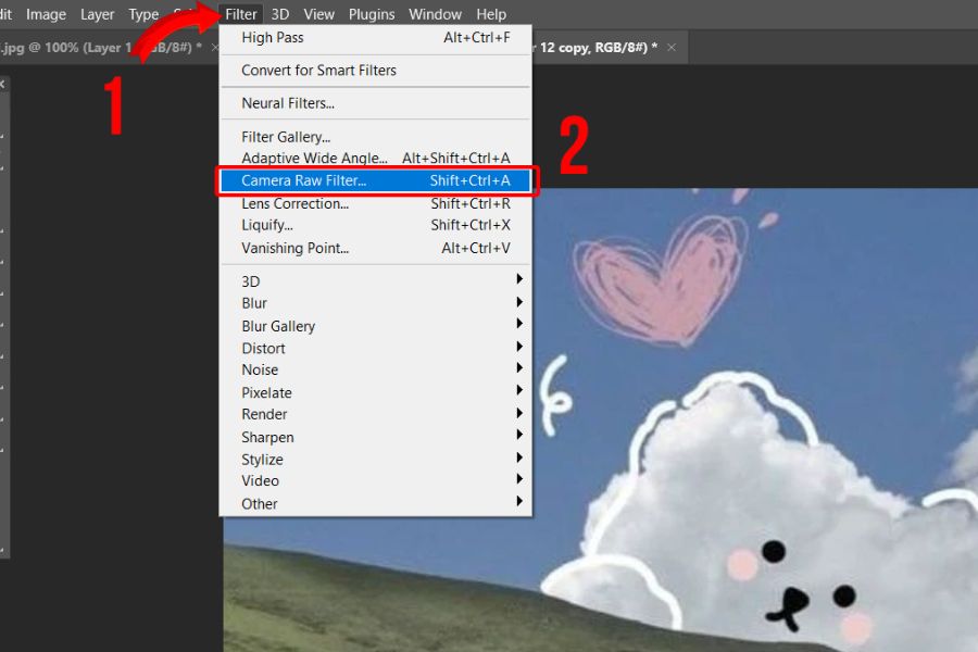 Bước 1: Mở ảnh và truy cập Camera Raw Filter