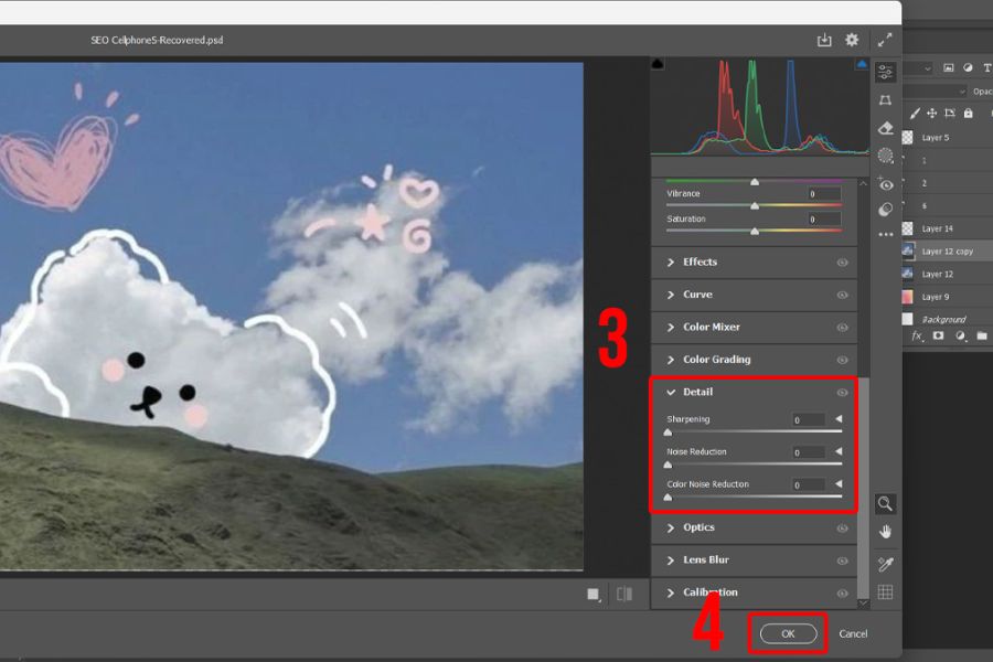 Bước 2: Điều chỉnh độ nét trong tab Detail