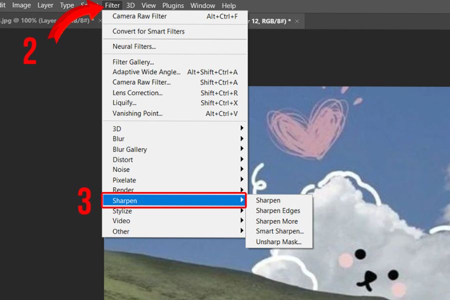 Bước 2: Truy cập Sharpen Filters