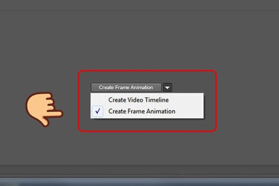 Sau khi đã hoàn tất việc chuẩn bị layer, bạn tiến hành mở bảng Timeline bằng cách chọn Window > Timeline trên thanh menu. Khi Timeline xuất hiện ở phía dưới giao diện làm việc, bạn nhấn chọn Create Frame Animation để bắt đầu tạo ảnh GIF.