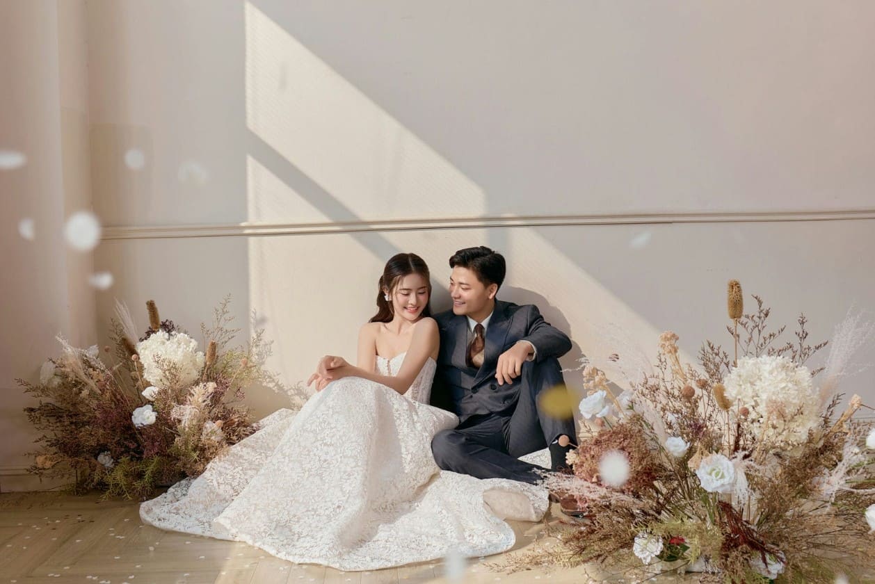 Tạo dáng ngồi mang đến cảm giác nhẹ nhàng, gần gũi và lãng mạn, rất phù hợp với những concept ảnh cưới mang màu sắc đời sống hoặc phong cách Hàn Quốc. Khi nhắc đến dáng ngồi, người xem thường liên tưởng đến những khoảnh khắc yên bình, như hai người đang cùng nhau trò chuyện trong một buổi hẹn hò riêng tư.