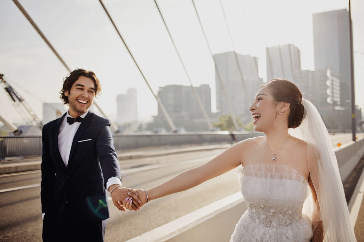 Trong xu hướng ảnh cưới 2026, dáng đứng còn được khai thác theo hướng tối giản, tập trung vào cảm xúc thay vì hình thể. Thay vì nhìn thẳng vào máy ảnh, các cặp đôi có thể nhìn nhau, nhìn về cùng một hướng hoặc đơn giản là mỉm cười nhẹ. Chính những khoảnh khắc tưởng chừng rất đời thường này lại tạo nên sức hút lâu dài cho album ảnh cưới.
