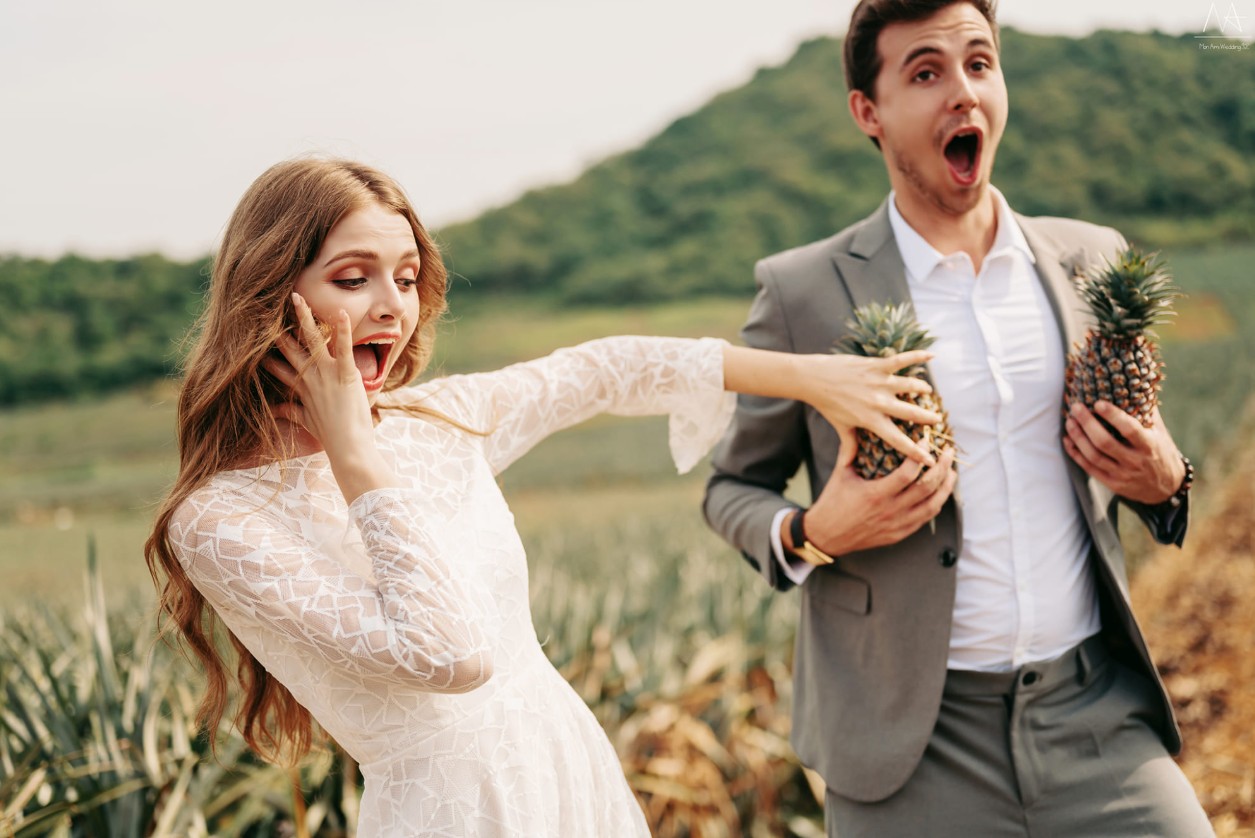 Những khoảnh khắc vui đùa, trêu chọc nhau luôn mang lại năng lượng tích cực cho album ảnh cưới. Đó có thể là một cái đuổi bắt nhẹ, một hành động trêu ghẹo hay đơn giản là cùng nhau cười lớn.
