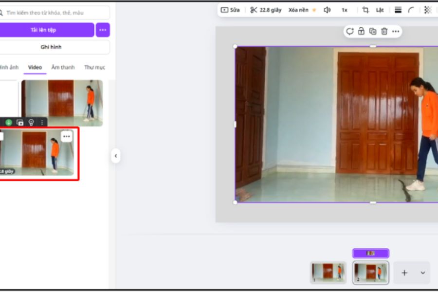 Thêm clip video, hình ảnh hoặc văn bản mới vào trang thứ hai chọn nội dung có khung hình, màu sắc hoặc chủ thể tương thích để Morph hoạt động tự nhiên. Nếu dùng video, cắt (trim) và căn chỉnh điểm bắt đầu/kết thúc sao cho khớp nhịp với trang trước, giúp chuyển cảnh mượt hơn.