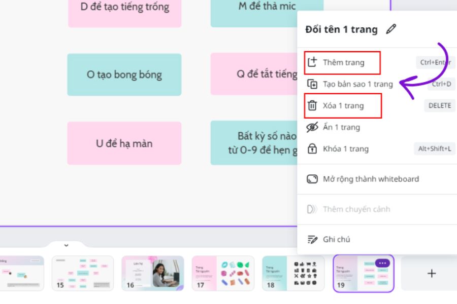 Tùy vào outline khóa học, thêm hoặc xóa trang để hoàn thiện chương mục. Bạn có thể nhân đôi slide mẫu để giữ độ đồng nhất, sau đó kéo thả để sắp xếp thứ tự bài học logic từ cơ bản đến nâng cao. Sử dụng tính năng nhóm, khóa hoặc căn chỉnh để bố cục đẹp và thống nhất giữa các slide.