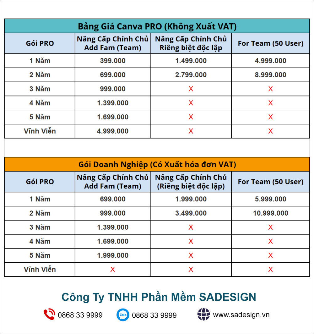 SaDesign tự hào là đơn vị cung cấp gói Canva Pro với mức giá hợp lý nhất trên thị trường. Với cam kết về chất lượng và tính năng đầy đủ, bạn sẽ nhận được sản phẩm xứng đáng với số tiền đã bỏ ra. Đừng bỏ lỡ cơ hội nâng cấp trải nghiệm thiết kế của bạn ngay hôm nay!