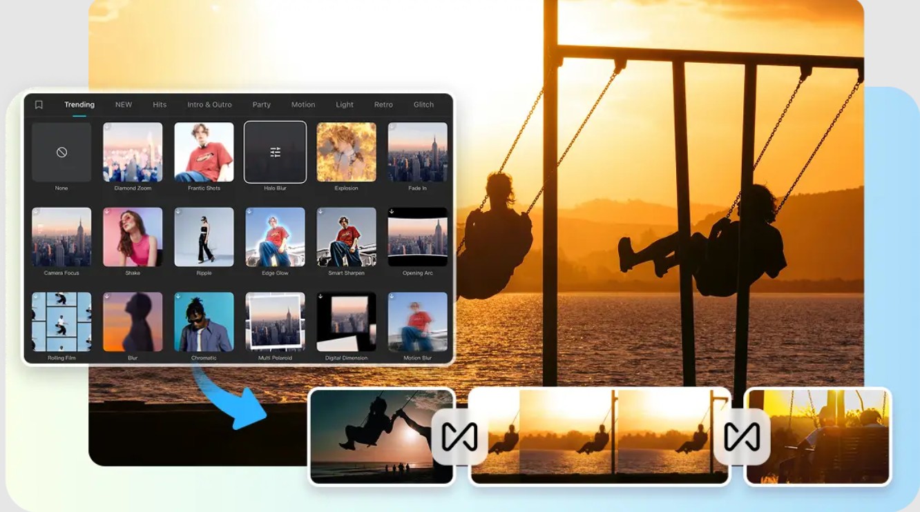 Khi tải xuống CapCut IPA cho iPad, bạn sẽ ngay lập tức có quyền truy cập vào một bộ sưu tập lớn các bộ lọc điện ảnh, hiệu ứng chuyển cảnh thịnh hành và hiệu ứng hình ảnh độc đáo. Từ những tông màu điện ảnh trầm ấm cho đến hiệu ứng rò rỉ ánh sáng hay phong cách lỗi kỹ thuật, CapCut cho phép bạn thử nghiệm và định hình phong cách riêng cho video của mình.