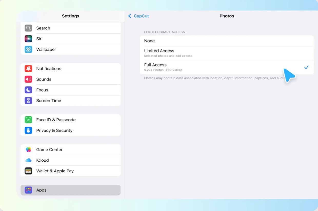 Việc này cho phép CapCut trên iPad nhập video và hình ảnh một cách liền mạch, giúp bạn bắt đầu chỉnh sửa ngay lập tức.