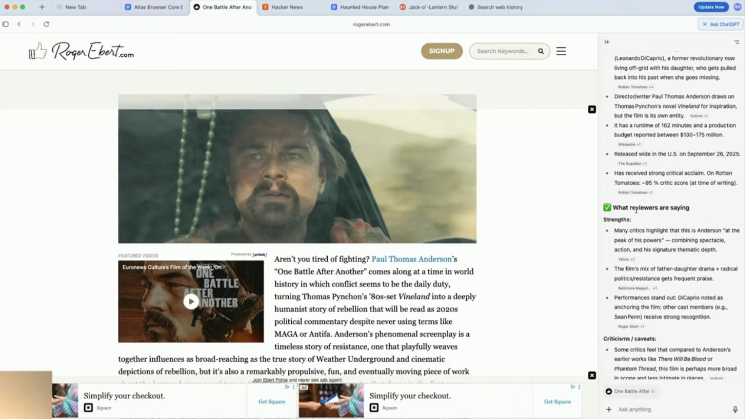Điểm khác biệt lớn nhất của Atlas nằm ở cách nó tích hợp ChatGPT vào mọi phần của giao diện. Bạn không còn cần mở một tab riêng để trò chuyện với chatbot, cũng không cần sao chép nội dung từ web sang ChatGPT để hỏi. Atlas đưa ChatGPT trở thành một lớp tương tác tự nhiên nằm trên chính trang web bạn đang xem.