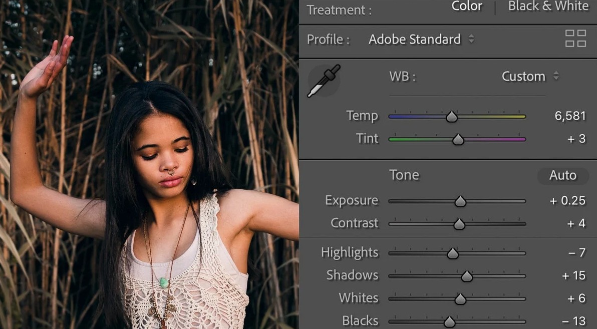 Các công cụ cơ bản trong Lightroom cho phép người dùng kiểm soát toàn bộ ánh sáng và màu sắc của bức ảnh. Ví dụ, bạn có thể tăng độ sáng để làm nổi bật chủ thể, điều chỉnh độ tương phản để tăng chiều sâu cho ảnh hoặc thay đổi nhiệt độ màu để tạo ra tông màu ấm áp hoặc lạnh hơn. Những thao tác này có thể được thực hiện chỉ trong vài giây nhưng mang lại sự thay đổi rõ rệt cho bức ảnh.